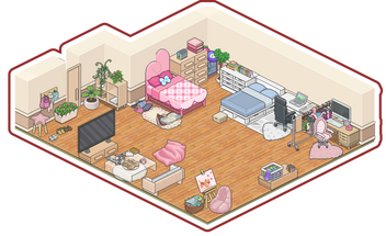 (A visual representation of their dorm at Habbo Hotel, just to get a sense of what it would be like, yk..)